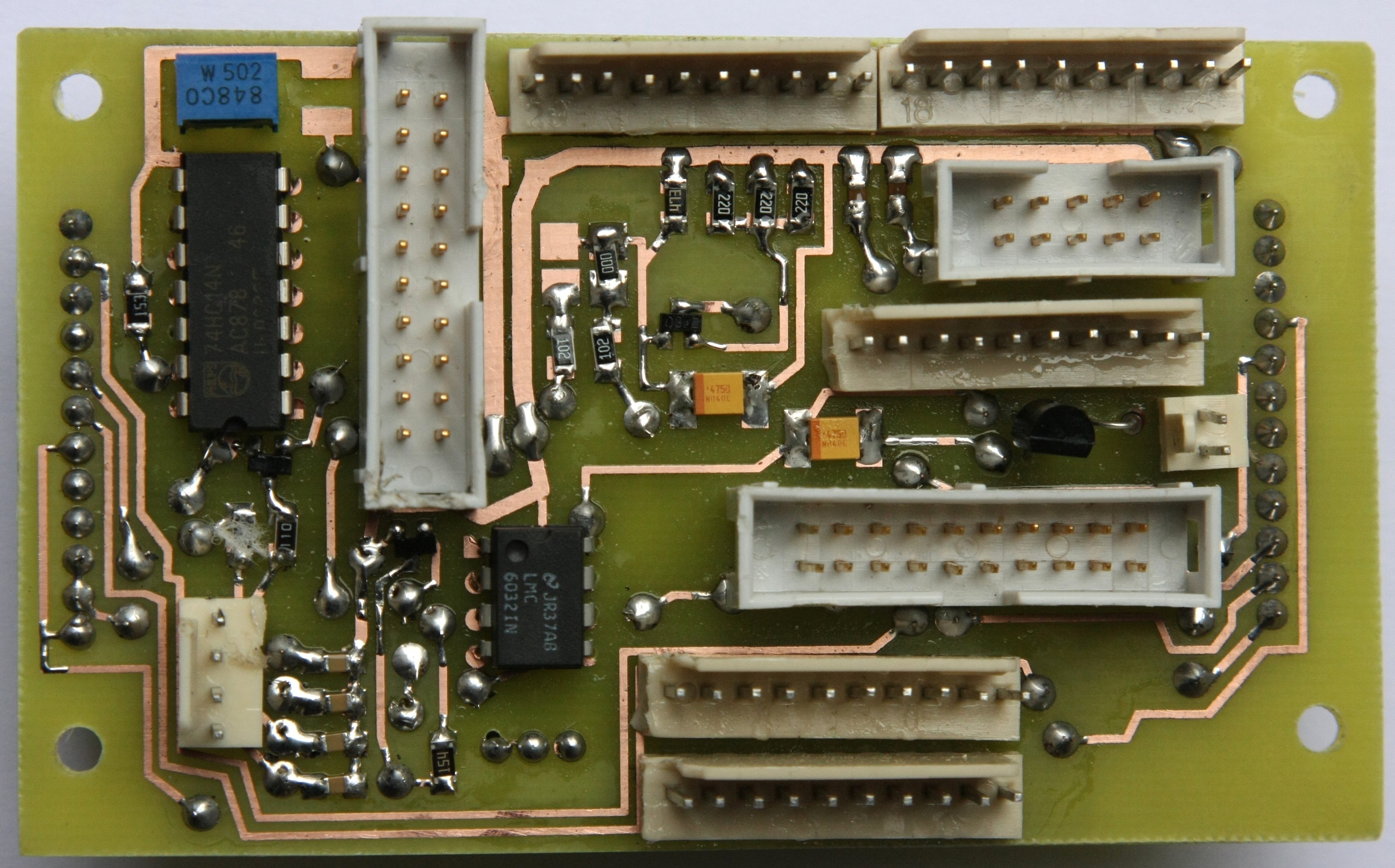 The 74HC14, LMC6032, 74L08 and two-way and four-way SIL connectors are only
