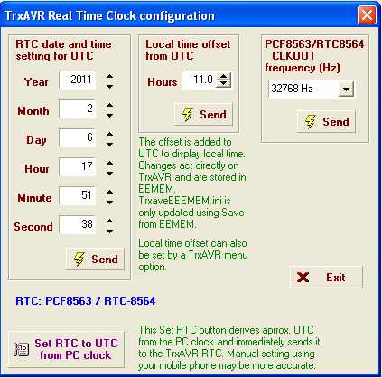 RTC support requires: Hobcat 1.078    TrxAVR 1.67   TftA 2.25   or later.