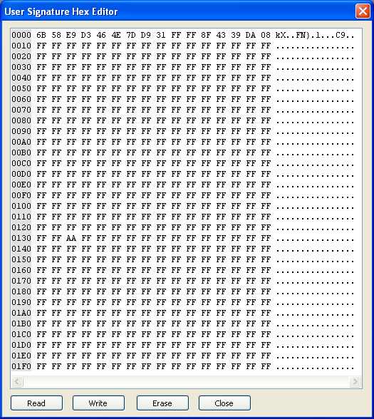 Hobcat's User Signature Row editor (bytes