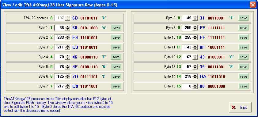 Each byte has a separate Save button to write back to the TftA