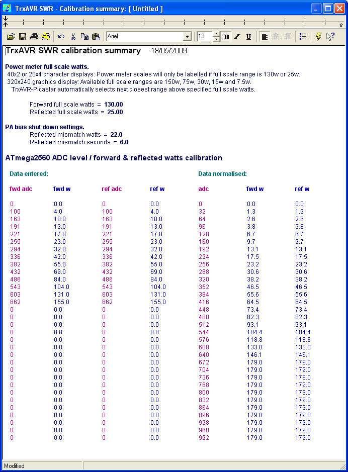 Your current forward and reflected calibration data is presented in a 'Wordpad - like' editor.