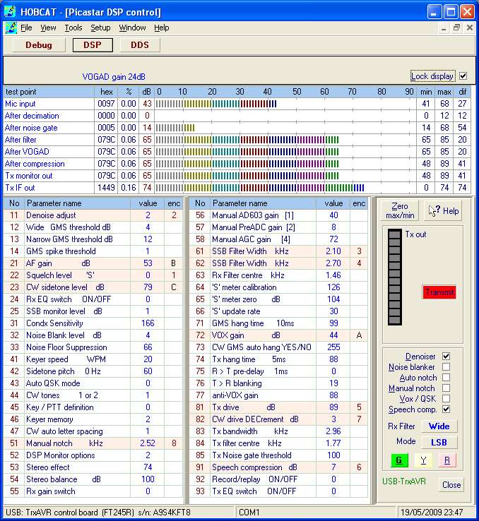 Hobcat's DSP display on transmit: