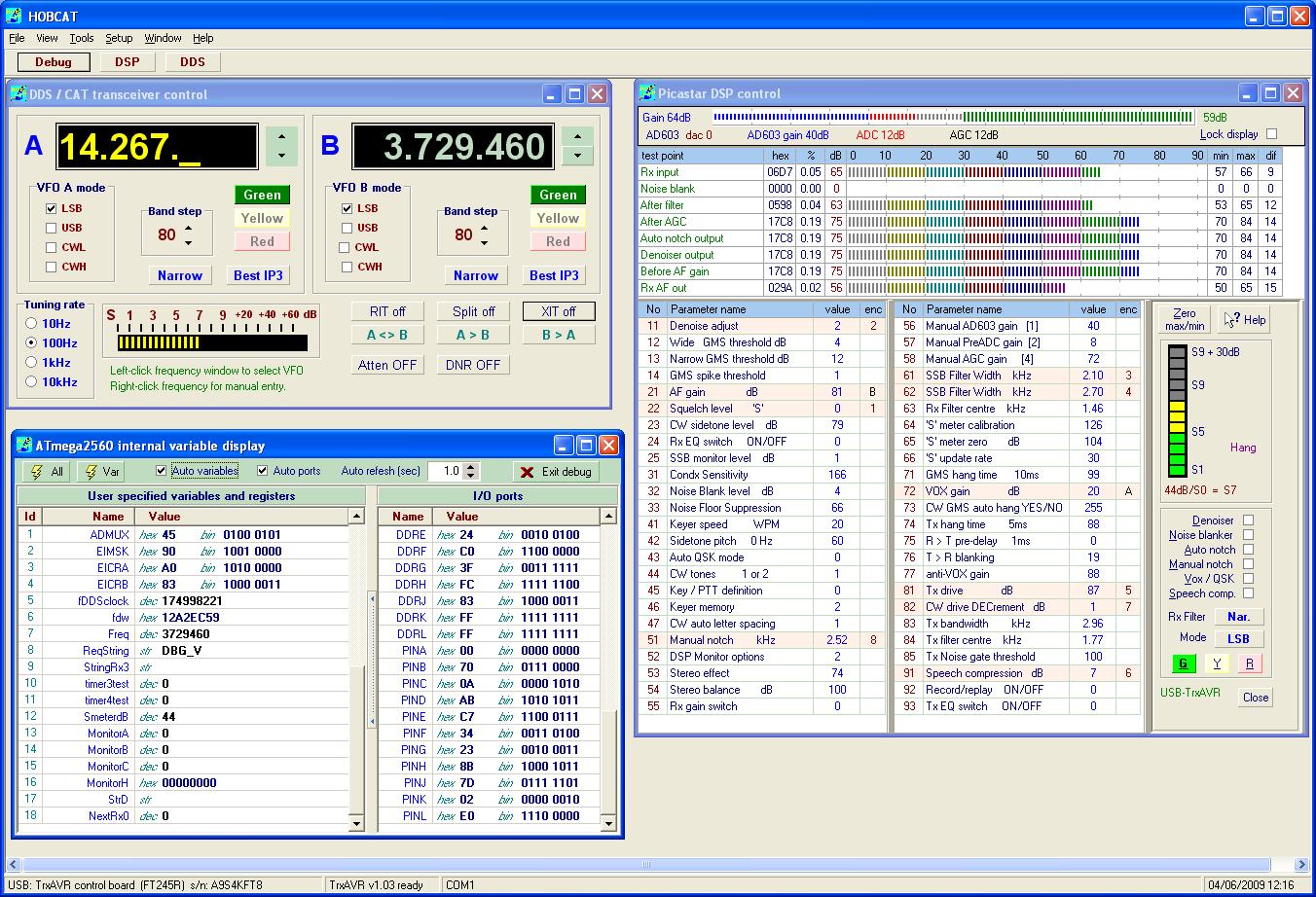 Hobcat was developed as a PC control, configuration and monitoring program for the TrxAVR_Picastar transceiver control board.