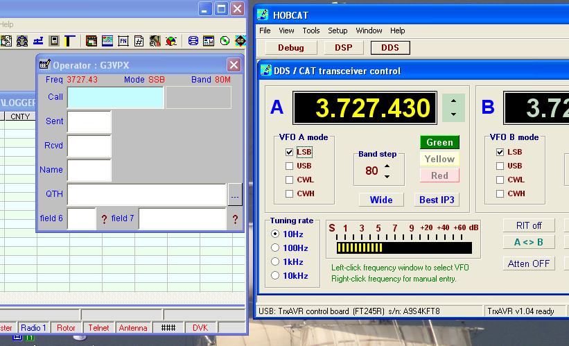 The screenshot below shows Looger32 used for logging and Hobcat for control.
