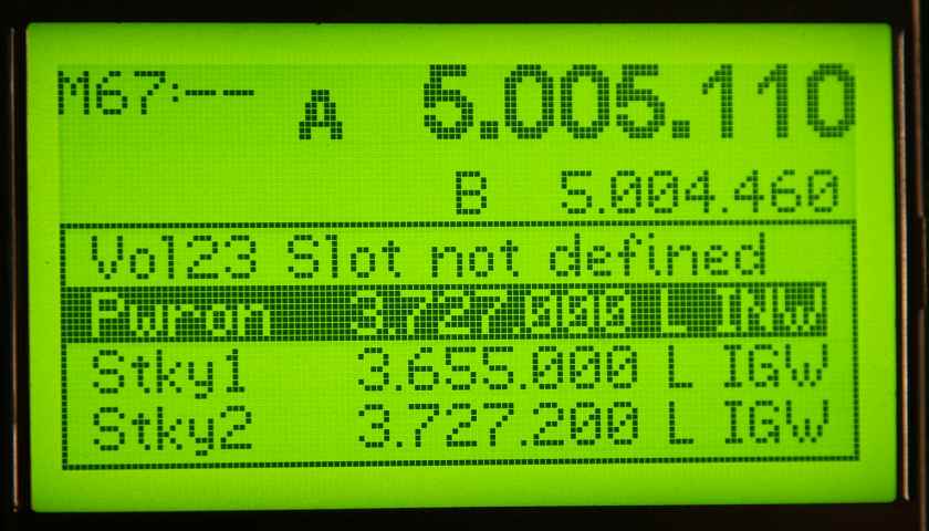 The following two screenshots of a white-on-blue display are from Gerard, VK3CG.