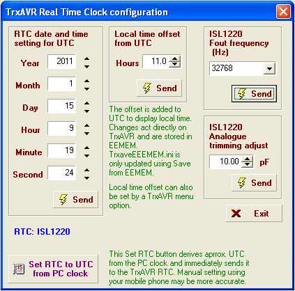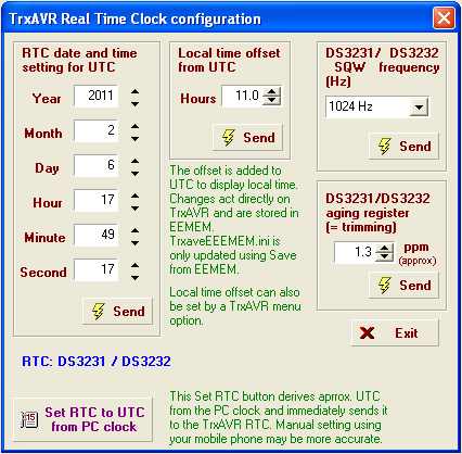 RTC support requires: Hobcat 1.078    TrxAVR 1.67   TftA 2.25   or later.